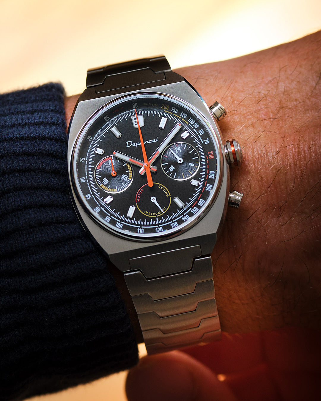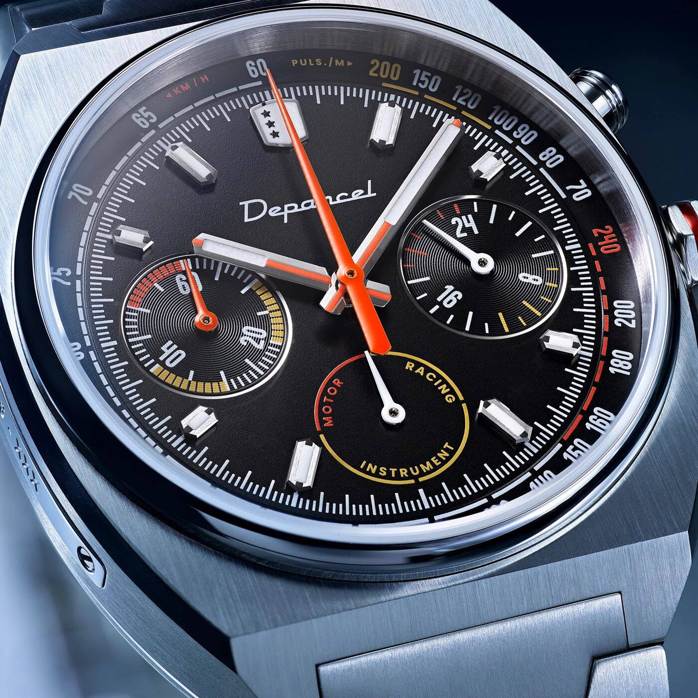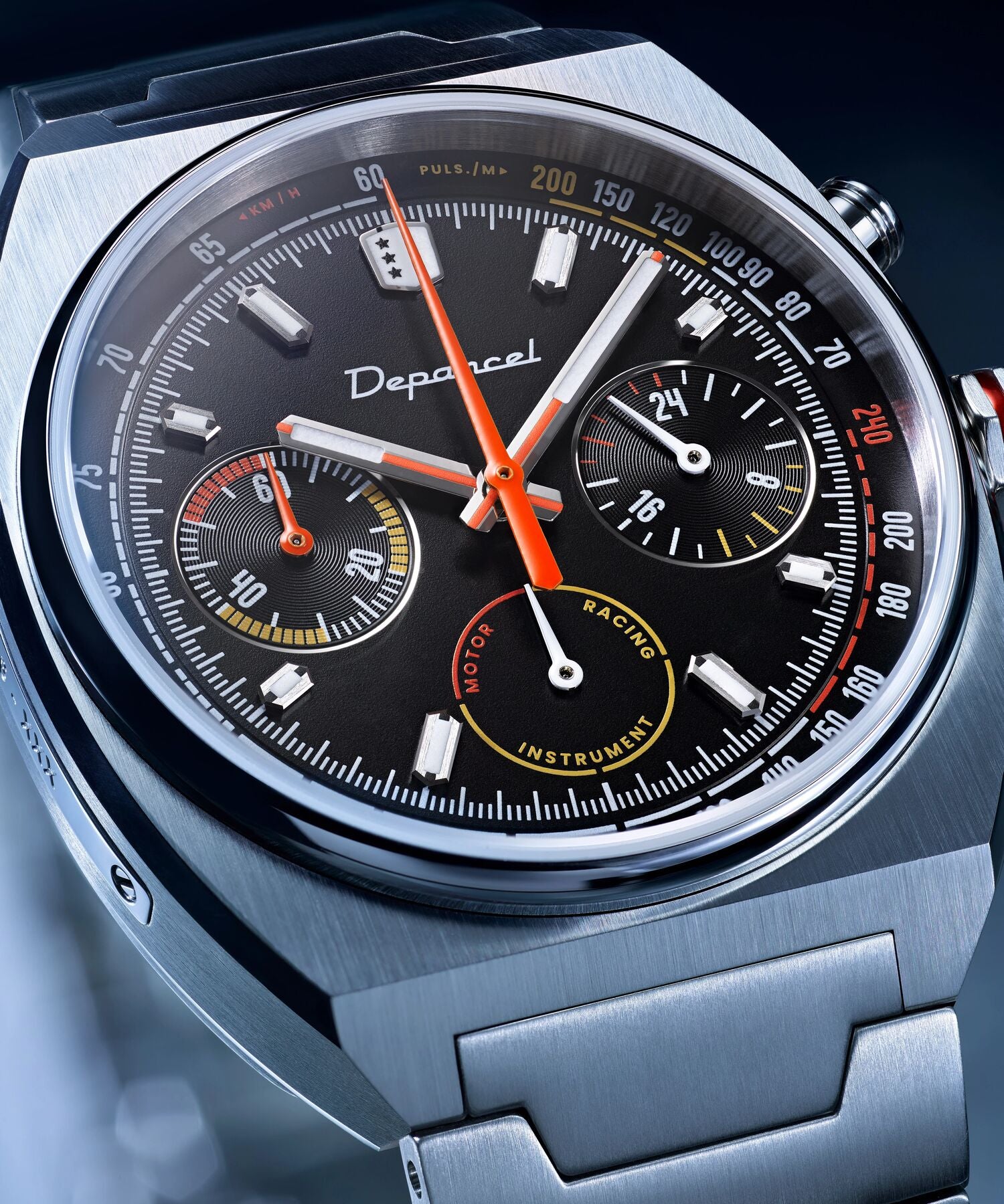Hoy, Depancel retoma con orgullo este híbrido de dos técnicas en su cronógrafo neo-vintage