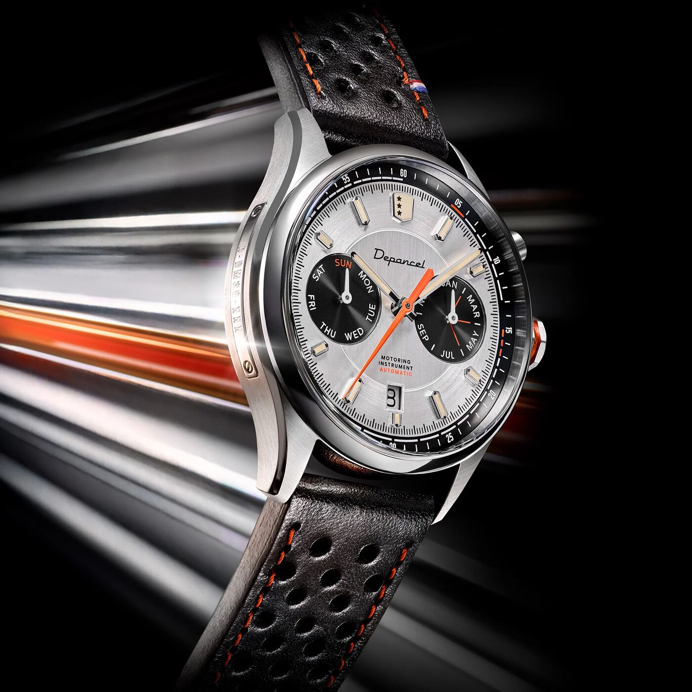 Con su caja de acero 316L y cristal de zafiro de doble cúpula, el Autosport presenta un perfil estilizado y elegante de 12,6 mm (11,2 mm sin el cristal) y 46 mm de asa a asa. Estas dimensiones están diseñadas para ofrecer el equilibrio perfecto entre comodidad y presencia en la muñeca.